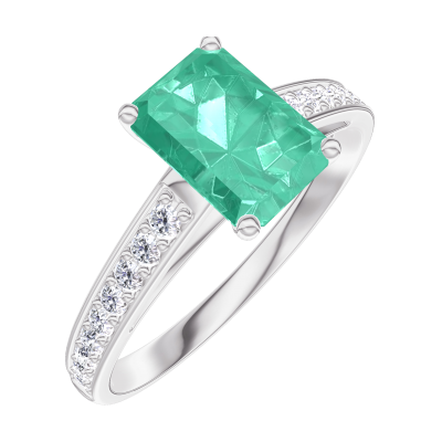 « L'ATELIER » Nº166808Pierścionek Białe złoto 375 - Szmaragd Prostokąt 0.7 karat - Oprawa Diament