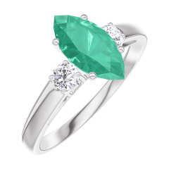 Pierścionek Białe złoto 750 - Szmaragd Markiza 0.7 karat - Kamienie boczne Diament