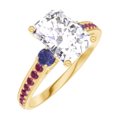 « L'ATELIER » NR 167469Pierścionek Żółte złoto 750 - Diament Prostokąt 1 karat - Kamienie boczne Niebieski szafir - Oprawa Rubin 4.4