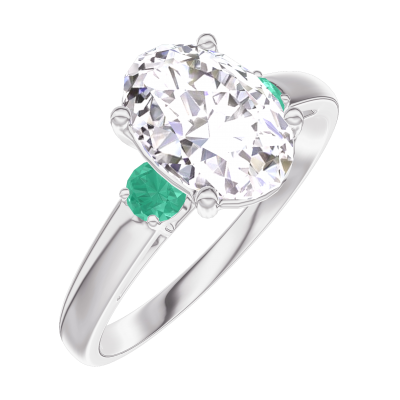 « L'ATELIER » Nº167583Pierścionek Białe złoto 750 - Diament Owal 1 karat - Kamienie boczne Szmaragd 4.7