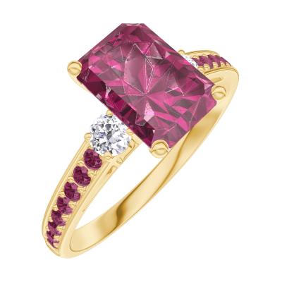 « L'ATELIER » Nº168030Pierścionek Żółte złoto 375 - Rubin Prostokąt 1 karat - Kamienie boczne Diament - Oprawa Rubin 4.6