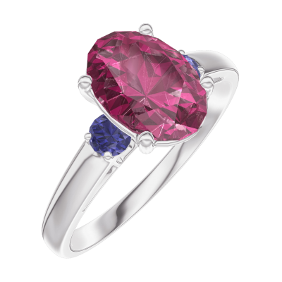 « L'ATELIER » Nº168164Pierścionek Białe złoto 375 - Rubin Owal 1 karat - Kamienie boczne Niebieski szafir 4.7