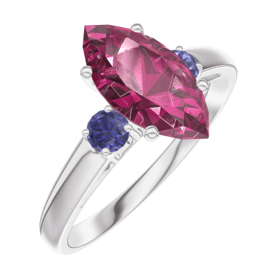 « L'ATELIER » Nº168364Pierścionek Białe złoto 375 - Rubin Markiza 1 karat - Kamienie boczne Niebieski szafir