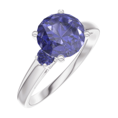 « L'ATELIER » NR 168464Pierścionek Białe złoto 375 - Niebieski szafir okrągły 1 karat - Kamienie boczne Niebieski szafir 4.7