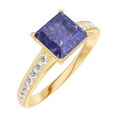Pierścionek Żółte złoto 375 - Niebieski szafir „Księżniczka” 1 karat - Oprawa Diament