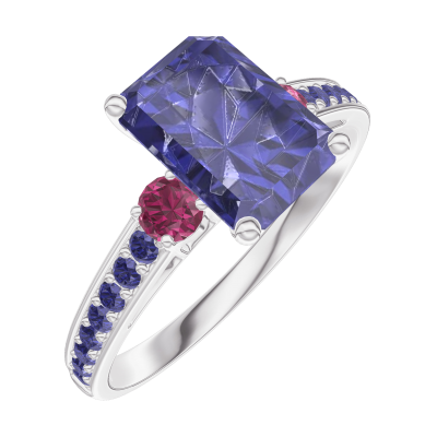 « L'ATELIER » Nº168656Pierścionek Białe złoto 375 - Niebieski szafir Prostokąt 1 karat - Kamienie boczne Rubin - Oprawa Niebieski szafir 4.6