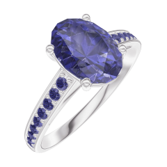 Pierścionek Białe złoto 750 - Niebieski szafir Owal 1 karat - Oprawa Niebieski szafir