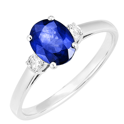 « L'ATELIER » NR 168723Pierścionek Białe złoto 750 - Niebieski szafir Owal 1 karat - Kamienie boczne Diament 4.7