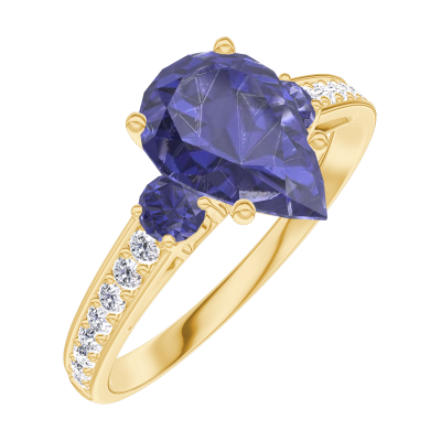 « L'ATELIER » NR 168866Pierścionek Żółte złoto 375 - Niebieski szafir Gruszka 1 karat - Kamienie boczne Niebieski szafir - Oprawa Diament