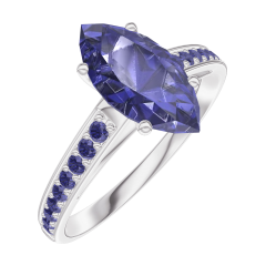 Pierścionek Białe złoto 750 - Niebieski szafir Markiza 1 karat - Oprawa Niebieski szafir