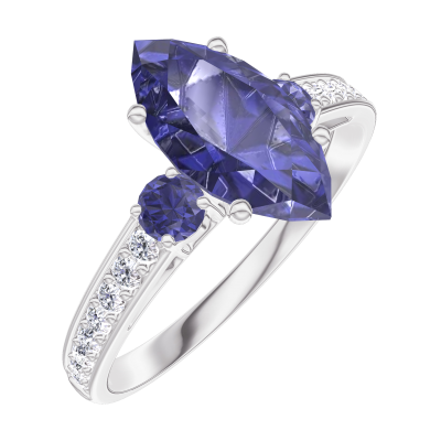 « L'ATELIER » NR 168968Pierścionek Białe złoto 375 - Niebieski szafir Markiza 1 karat - Kamienie boczne Niebieski szafir - Oprawa Diament