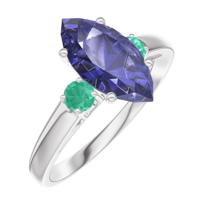« L'ATELIER » Nº168984Pierścionek Białe złoto 375 - Niebieski szafir Markiza 1 karat - Kamienie boczne Szmaragd