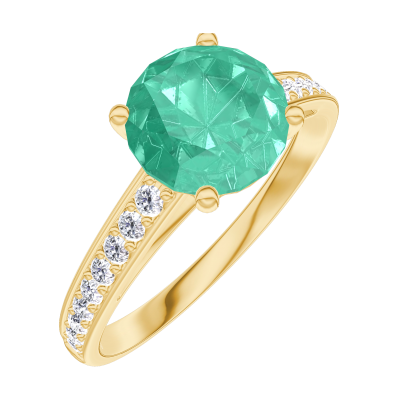 « L'ATELIER » Nº169005Pierścionek Żółte złoto 750 - Szmaragd okrągły 1 karat - Oprawa Diament 4.7