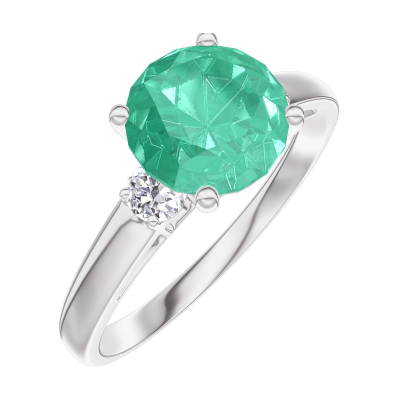 « L'ATELIER » Nº169023Pierścionek Białe złoto 750 - Szmaragd okrągły 1 karat - Kamienie boczne Diament 4.7
