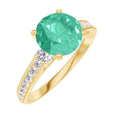 « L'ATELIER » NR 169025Pierścionek Żółte złoto 750 - Szmaragd okrągły 1 karat - Kamienie boczne Diament - Oprawa Diament 4.8