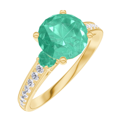 « L'ATELIER » NR 169086Pierścionek Żółte złoto 375 - Szmaragd okrągły 1 karat - Kamienie boczne Szmaragd - Oprawa Diament 4.7