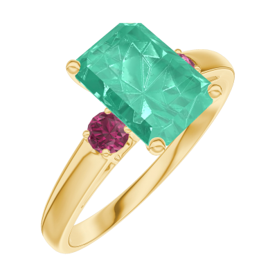 « L'ATELIER » NR 169241Pierścionek Żółte złoto 750 - Szmaragd Prostokąt 1 karat - Kamienie boczne Rubin 4.6 (5)