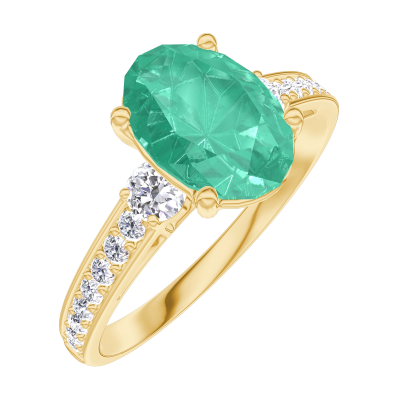 « L'ATELIER » NR 169325Pierścionek Żółte złoto 750 - Szmaragd Owal 1 karat - Kamienie boczne Diament - Oprawa Diament 4.7