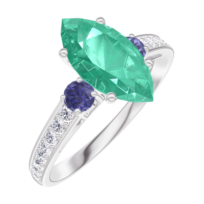« L'ATELIER » Nº169567Pierścionek Białe złoto 750 - Szmaragd Markiza 1 karat - Kamienie boczne Niebieski szafir - Oprawa Diament