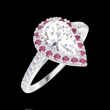 « L'ATELIER » Nº170215Pierścionek Białe złoto 750 - Diament Gruszka 0.5 karat - Korona z kamieni Rubin - Oprawa Diament 4.8
