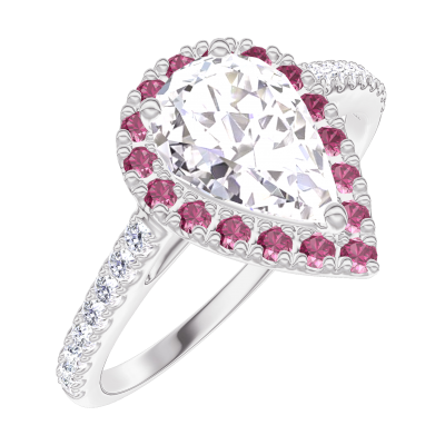 « L'ATELIER » Nº170216Pierścionek Białe złoto 375 - Diament Gruszka 0.5 karat - Korona z kamieni Rubin - Oprawa Diament 4.8