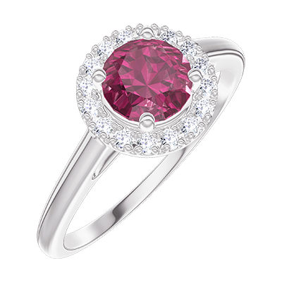 « L'ATELIER » NR 170292Pierścionek Białe złoto 375 - Rubin okrągły 0.5 karat - Korona z kamieni Diament 4.7