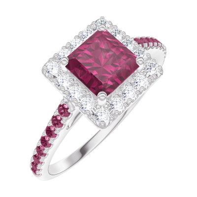 « L'ATELIER » Nº170347Pierścionek Białe złoto 750 - Rubin „Księżniczka” 0.5 karat - Korona z kamieni Diament - Oprawa Rubin 4.1