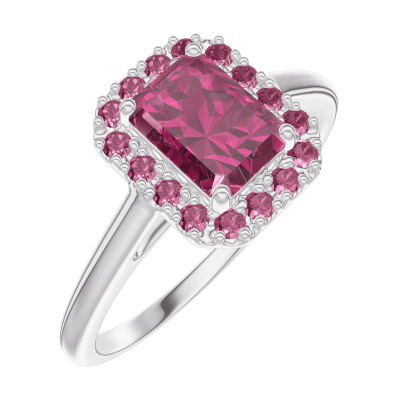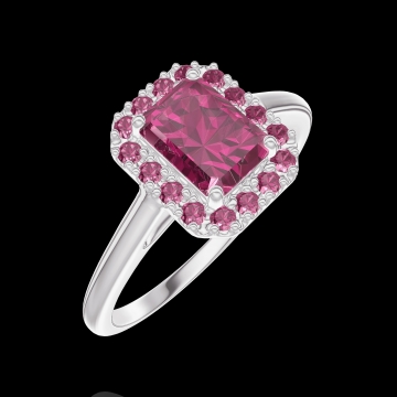 « L'ATELIER » Nº170404Pierścionek Białe złoto 375 - Rubin Prostokąt 0.5 karat - Korona z kamieni Rubin 4.7