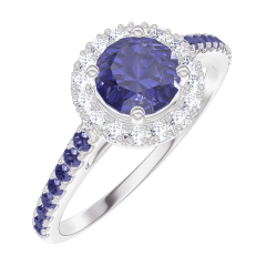 « L'ATELIER » NR 170591Pierścionek Białe złoto 750 - Niebieski szafir okrągły 0.5 karat - Korona z kamieni Diament - Oprawa Niebieski szafir 4.7