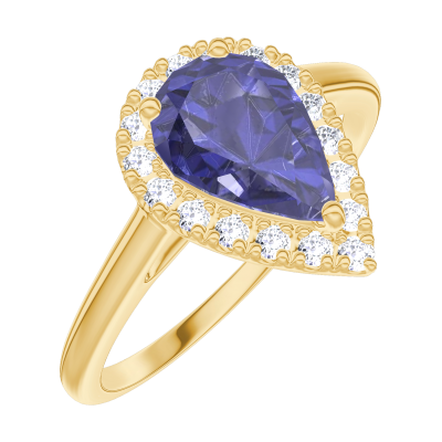« L'ATELIER » Nº170770Pierścionek Żółte złoto 375 - Niebieski szafir Gruszka 0.5 karat - Korona z kamieni Diament 4.8
