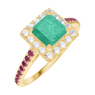 « L'ATELIER » Nº170921Pierścionek Żółte złoto 750 - Szmaragd „Księżniczka” 0.5 karat - Korona z kamieni Diament - Oprawa Rubin 4.1