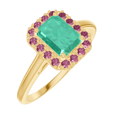 « L'ATELIER » NR 170977Pierścionek Żółte złoto 750 - Szmaragd Prostokąt 0.5 karat - Korona z kamieni Rubin 4.7