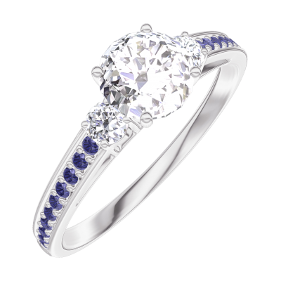 « L'ATELIER » Nº182436Pierścionek Białe złoto 375 - Diament laboratoryjny okrągły 0.5 karat - Kamienie boczne Diament laboratoryjny - Oprawa Niebieski szafir 4.5