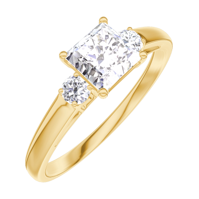 « L'ATELIER » NR 182521Pierścionek Żółte złoto 750 - Diament laboratoryjny „Księżniczka” 0.5 karat - Kamienie boczne Diament laboratoryjny