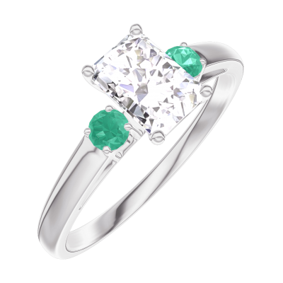 « L'ATELIER » Nº182684Pierścionek Białe złoto 375 - Diament laboratoryjny Prostokąt 0.5 karat - Kamienie boczne Szmaragd