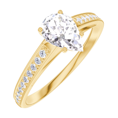 Pierścionek Żółte złoto 750 - Diament laboratoryjny Gruszka 0.5 karat - Oprawa Diament laboratoryjny