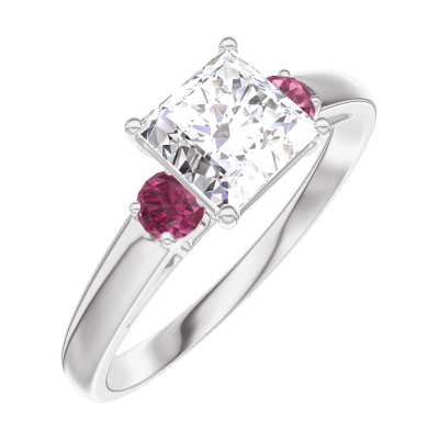 « L'ATELIER » NR 184944Pierścionek Białe złoto 375 - Diament laboratoryjny „Księżniczka” 0.7 karat - Kamienie boczne Rubin