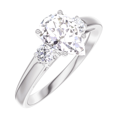 « L'ATELIER » NR 185223Pierścionek Białe złoto 750 - Diament laboratoryjny Gruszka 0.7 karat - Kamienie boczne Diament laboratoryjny