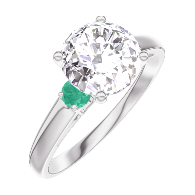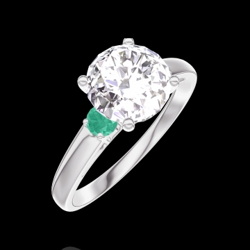 « L'ATELIER » Nº187283Pierścionek Białe złoto 750 - Diament laboratoryjny okrągły 1 karat - Kamienie boczne Szmaragd 4.8