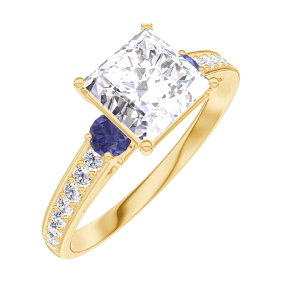 « L'ATELIER » NR 187365Pierścionek Żółte złoto 750 - Diament laboratoryjny „Księżniczka” 1 karat - Kamienie boczne Niebieski szafir - Oprawa Diament laboratoryjny