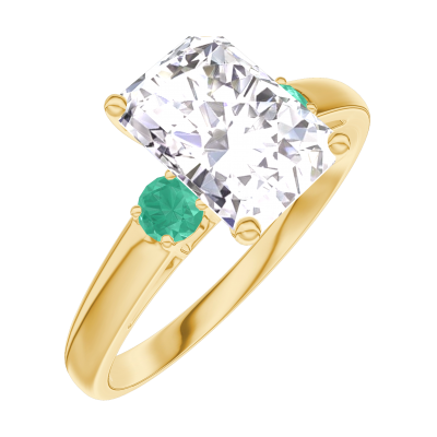 « L'ATELIER » NR 187482Pierścionek Żółte złoto 375 - Diament laboratoryjny Prostokąt 1 karat - Kamienie boczne Szmaragd 4.6