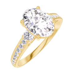 Pierścionek Żółte złoto 750 - Diament laboratoryjny Owal 1 karat - Kamienie boczne Diament laboratoryjny - Oprawa Diament laboratoryjny