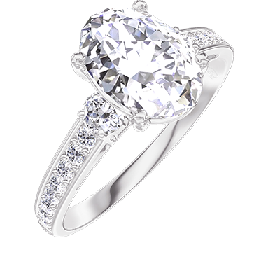 « L'ATELIER » NR 187527Pierścionek Białe złoto 750 - Diament laboratoryjny Owal 1 karat - Kamienie boczne Diament laboratoryjny - Oprawa Diament laboratoryjny 4.7