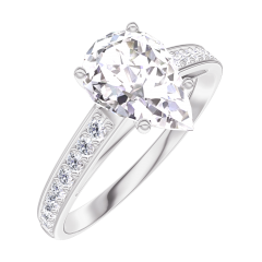 Pierścionek Białe złoto 375 - Diament laboratoryjny Gruszka 1 karat - Oprawa Diament laboratoryjny