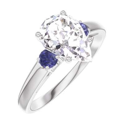 « L'ATELIER » NR 187664Pierścionek Białe złoto 375 - Diament laboratoryjny Gruszka 1 karat - Kamienie boczne Niebieski szafir