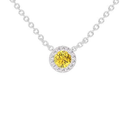 « L'ATELIER » Nº196388Naszyjnik Białe złoto 375 - Żółty szafir okrągły 0.3 karat - Korona z kamieni Diament - Łańcuszek Łańcuszek ankier