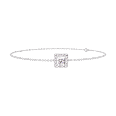 « L'ATELIER » NR 200236Bransoletka Białe złoto 375 - Diament laboratoryjny „Księżniczka” 0.3 karat - Korona z kamieni Diament laboratoryjny - Łańcuszek Łańcuszek ankier