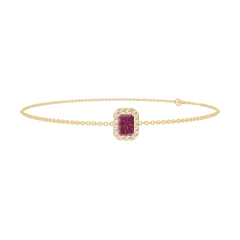Bransoletka Żółte złoto 750 - Rubin Prostokąt 0.3 karat - Korona z kamieni Diament - Łańcuszek Łańcuszek ankier