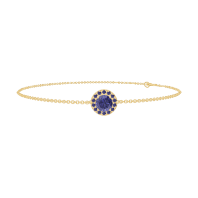 « L'ATELIER » NR 200602Bransoletka Żółte złoto 375 - Niebieski szafir okrągły 0.3 karat - Korona z kamieni Niebieski szafir - Łańcuszek Łańcuszek ankier 4.7