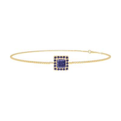 « L'ATELIER » Nº200637Bransoletka Żółte złoto 750 - Niebieski szafir „Księżniczka” 0.3 karat - Korona z kamieni Niebieski szafir - Łańcuszek Wenecjana